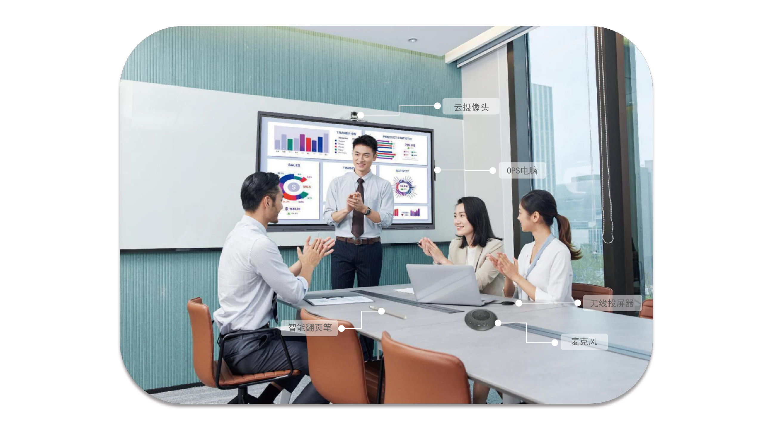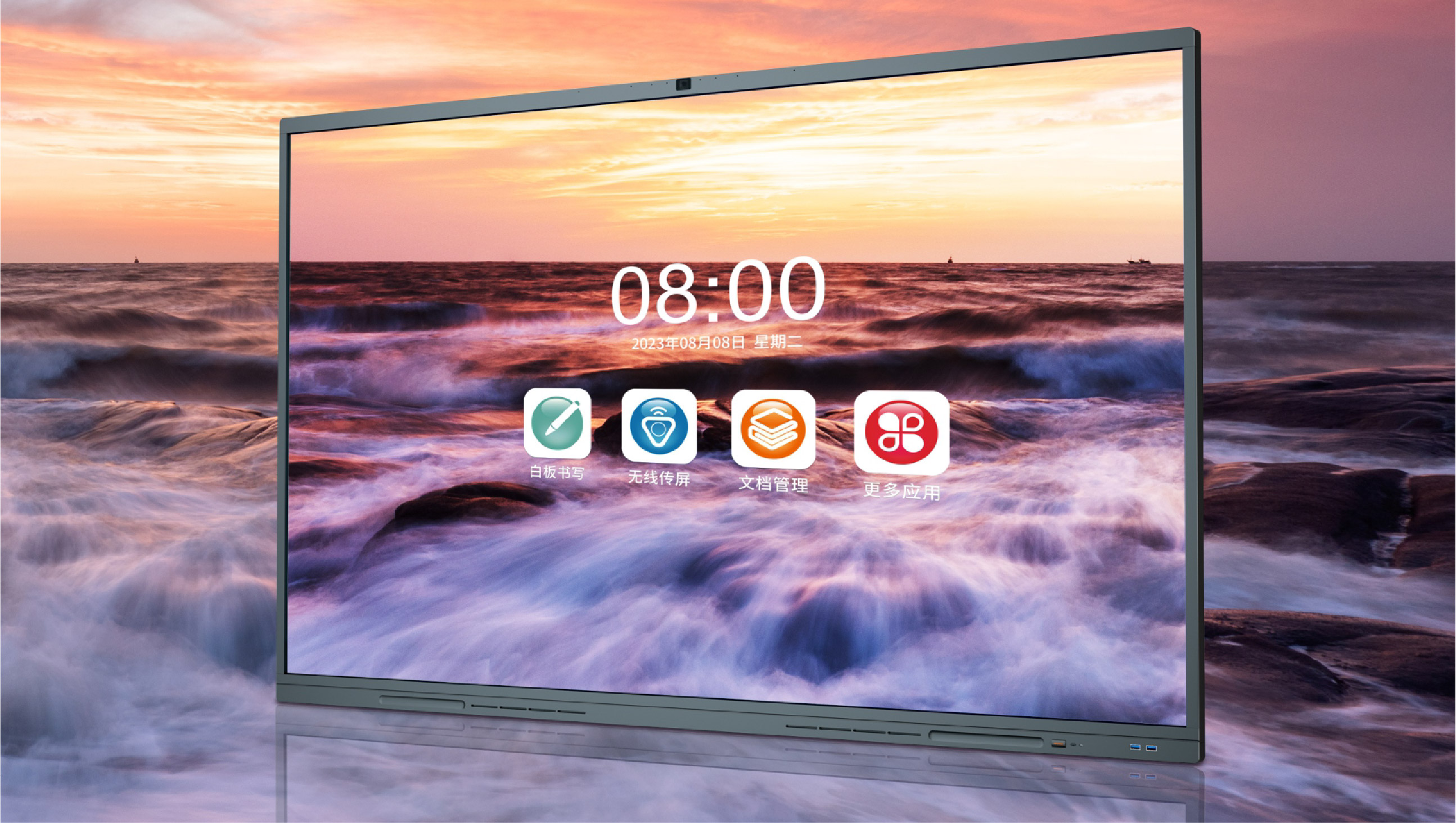 八機(jī)合一:集合投影儀、幕布、電子白板、電視、電腦、平板、機(jī)頂盒、音響八種設(shè)備功能于一體,化繁為簡,提高企業(yè)形象、辦公效率。