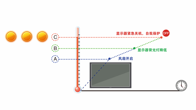 溫度管理、郵件報(bào)警、延遲開機(jī)等方面的安全設(shè)計(jì),顯示器在苛刻工業(yè)環(huán)境仍能正常工作