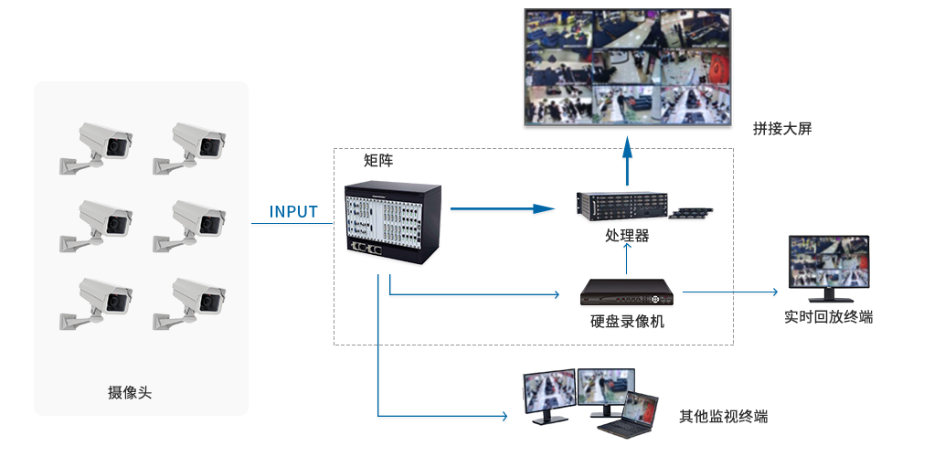 安全調度指揮顯示系統主要包括圖像處理能力極強和顯示效果,以及與之配套的多屏拼接控制器,支持單屏、跨屏以及整屏顯示,實現圖像窗口的縮放、移動、漫游等功能。通過對圖像獨特的處理方式,體現在多路信息的同步顯示能力、系統的超強穩定工作能力和強大的軟件支持能力上。